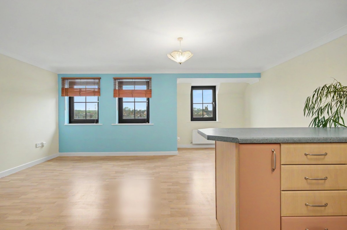 The property opens into a welcoming entrance hall leading to both bedrooms and open plan kitchen/living room. The spacious living space is a standout feature, offering generous space for both relaxing and entertaining, complemented by fitted units and ample worktop space. Multiple windows to the rear of the building, provide excellent natural light and enhance the sense of space.