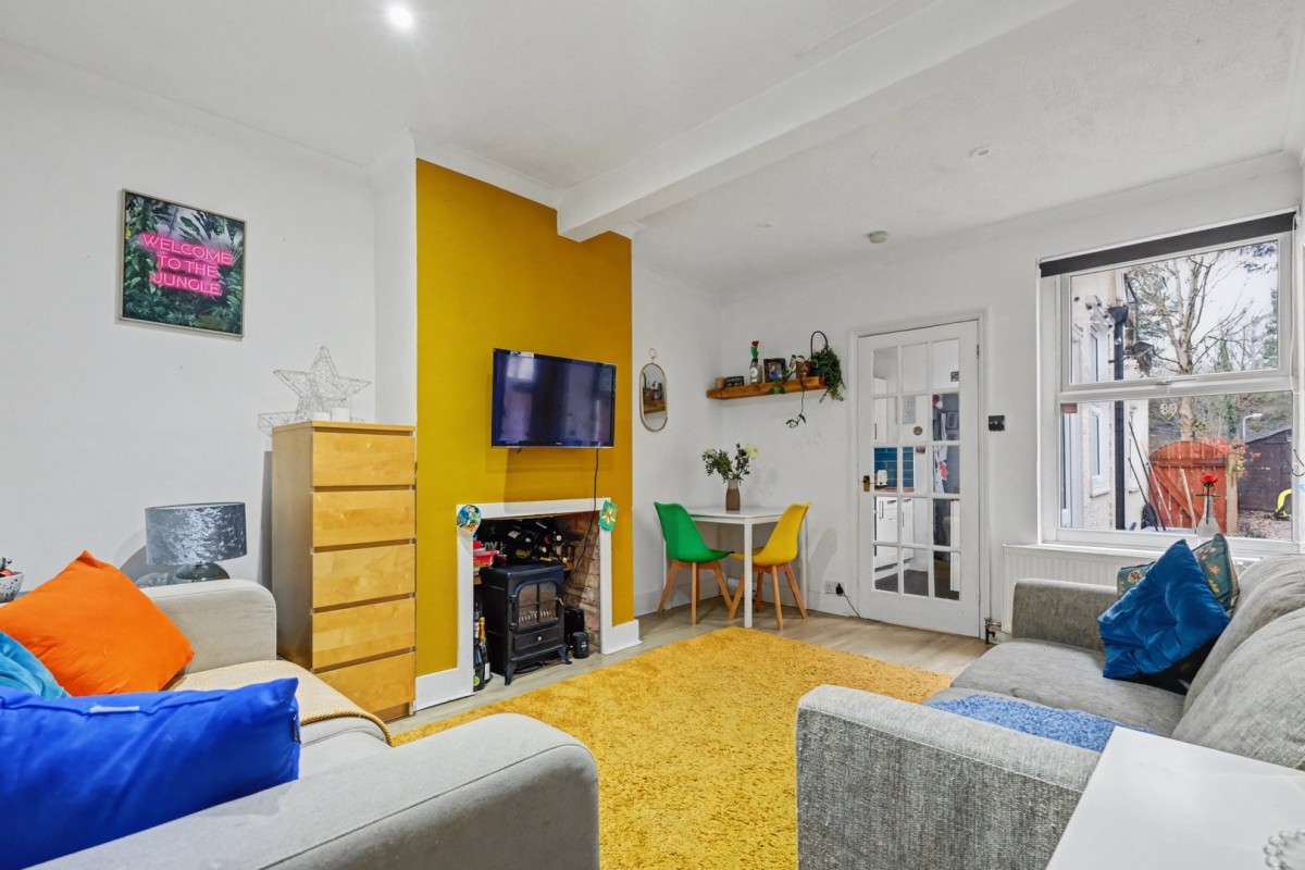 The living room is positioned to the rear of the property and provides a comfortable and sociable space, complete with a feature fireplace and ample room for both seating and dining areas. The kitchen is fitted with a range of units and work surfaces, with views over the rear garden and access through to the bathroom. The bathroom is fitted with a modern white suite including bath with shower over, wash basin and WC.