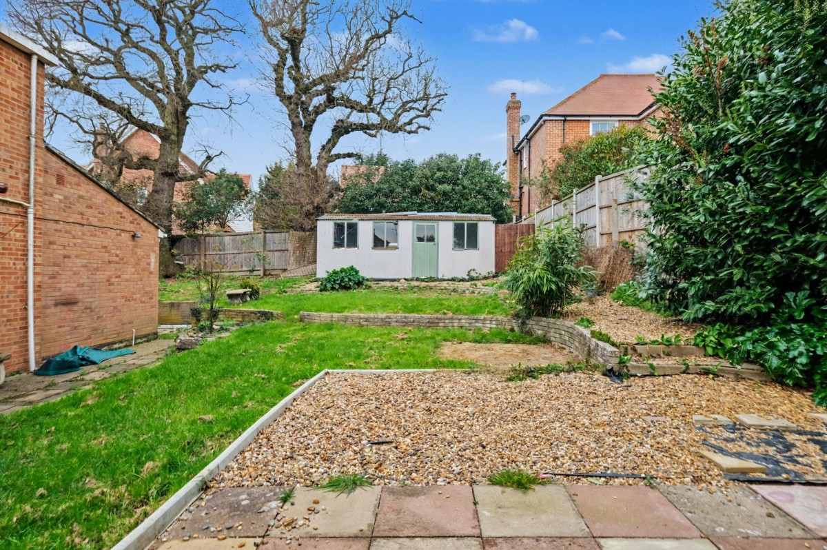The property enjoys a sizeable corner plot with a spacious rear garden area which wraps around the side and rear of the property and features a tiered lawn with paved areas and a large timber garden building which measures approximately 19'10 x 9'5. Double gates provide access to front of the property where there is ample communal parking.