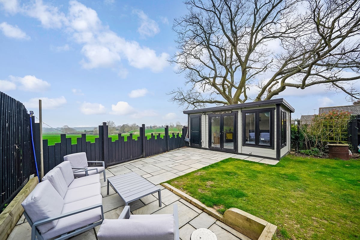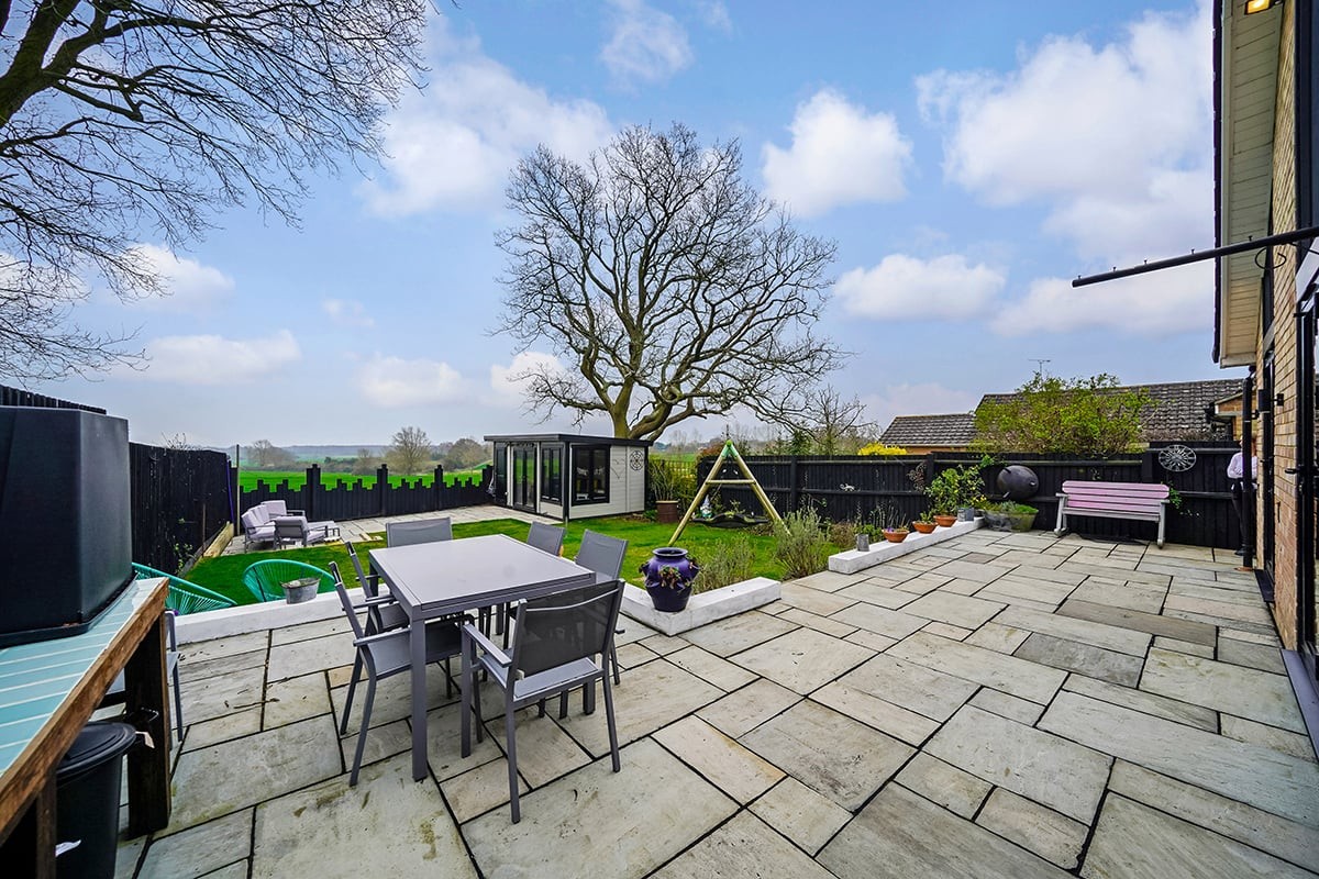 Thoughtfully extended to the rear by the present owners this four bedroom detached bungalow now offers a stunning and spacious open plan family living space which utilises full height glazing to ensure the room is flooded with natural light and maximises the stunning views down the garden to the farmland beyond the rear boundary.