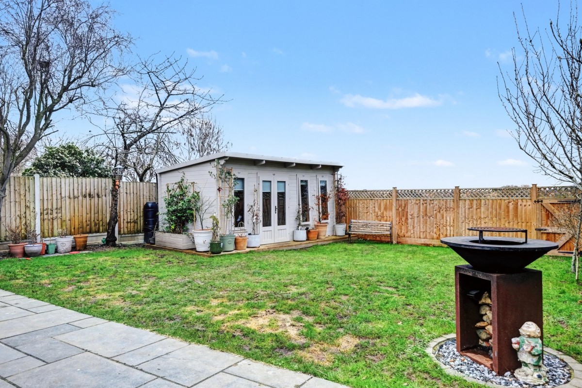Externally, the property is set within a small mews-style turning and benefits from a driveway providing off-road parking. The remaining garage space offers useful storage, with side access leading to the rear garden. The garden is mainly laid to lawn and features a paved patio area and a timber-built summerhouse, ideal for outdoor entertaining or relaxation.
