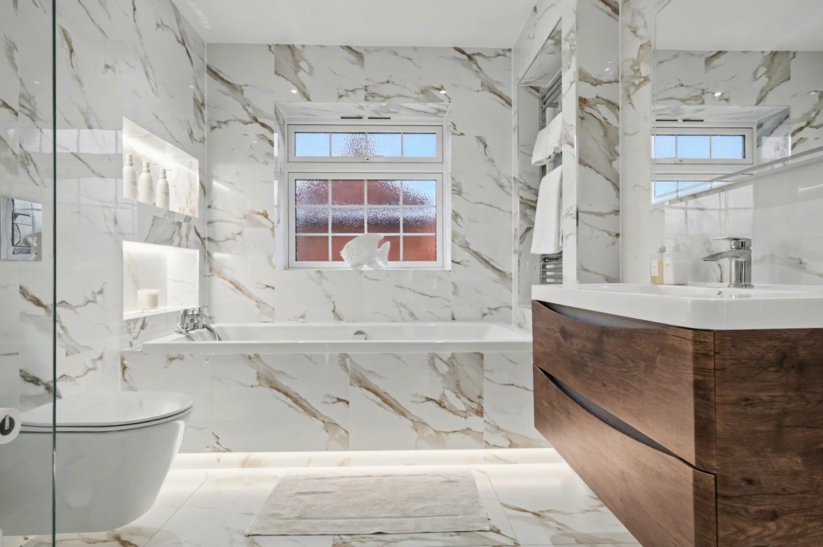 To the first floor, the accommodation has been carefully planned to suit the needs of a growing family. There are three generous double bedrooms, with the principal suite benefiting from a spacious dressing room and a luxurious four-piece en-suite bathroom. The guest bedroom also enjoys the convenience of an en-suite shower room, while a stylish four-piece family bathroom completes the internal accommodation.