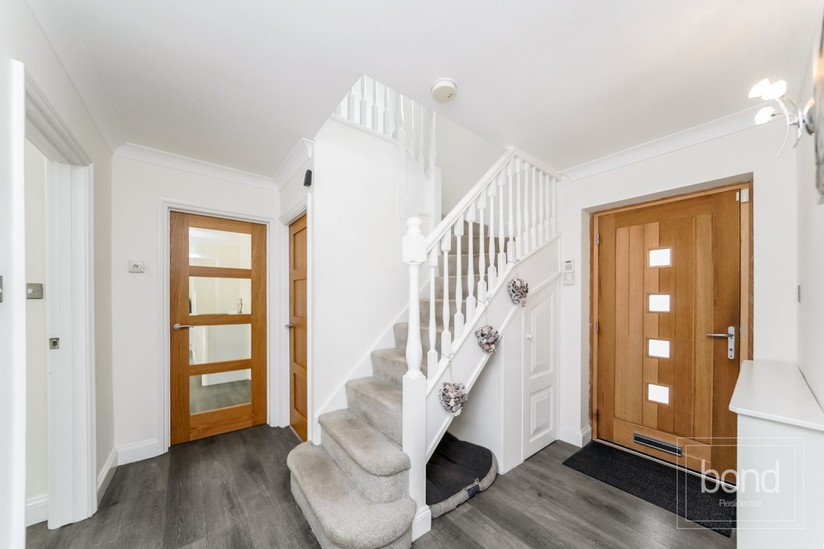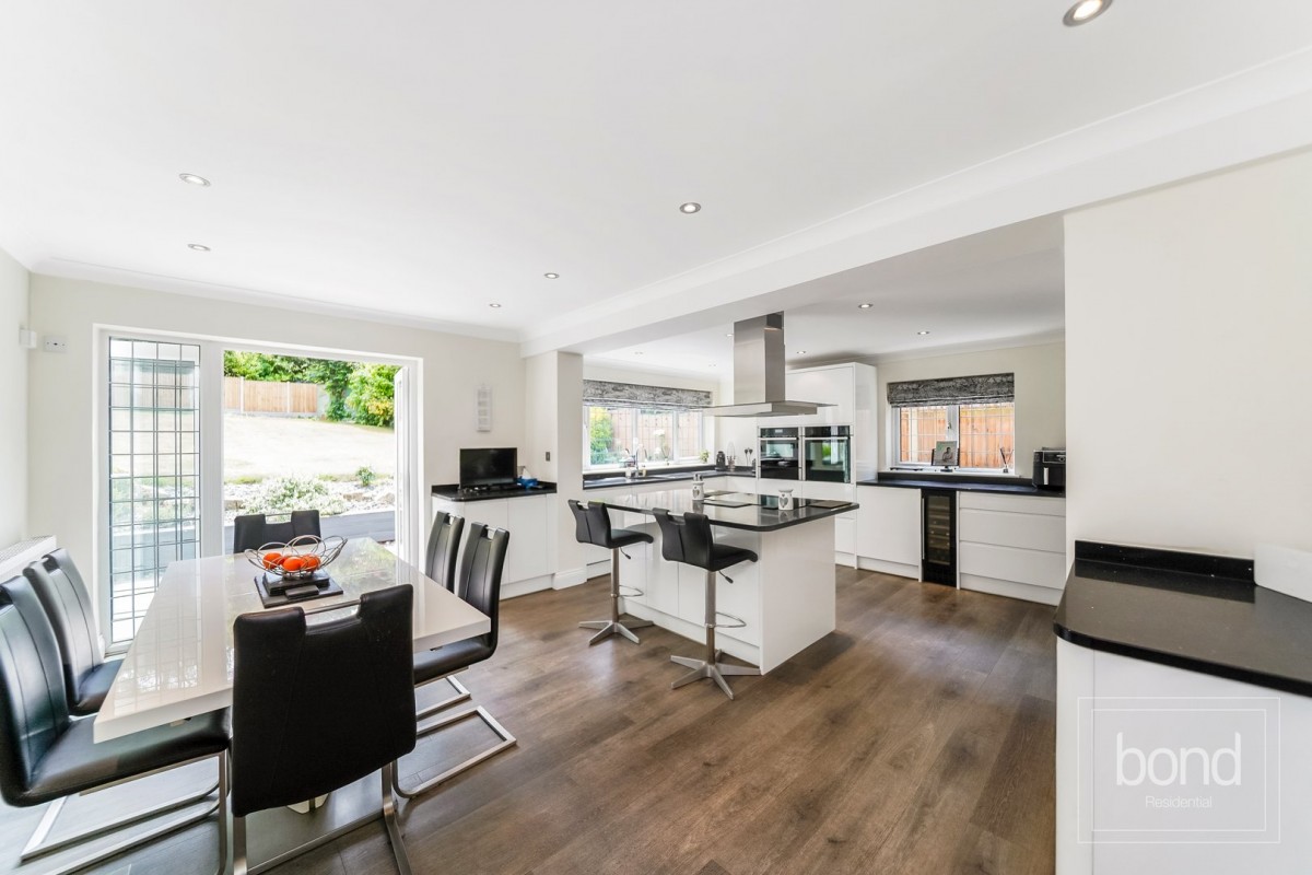 Situated in a sought after lane providing easy access to the village as well as the surrounding woodland, occupying a plot circa 0.25 acres is this extended five bedroom detached family house, offering generous bedrooms and three ensuites plus a family bathroom, open plan kitchen and dining rooms, with two additional reception rooms and study. Outside is an in and out driveway providing ample parking and access to the garage, and to the rear is a southerly aspect well screened garden.