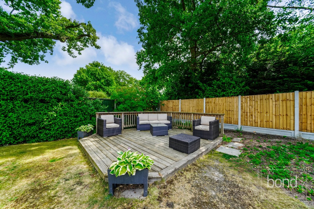 The property occupies a plot around 0.25 of an acre, enjoying a southerly aspect rear garden, with immediate paved patio area with composite decking area to one side, with steps up flanked by slate beds leading to large lawn expanse, well screened by hedging, leading to a raised decking seating area to the rear of the property. There is access down the flank of the property via timber gate to the front as well as an electric remote roller shutter access door to the garage.