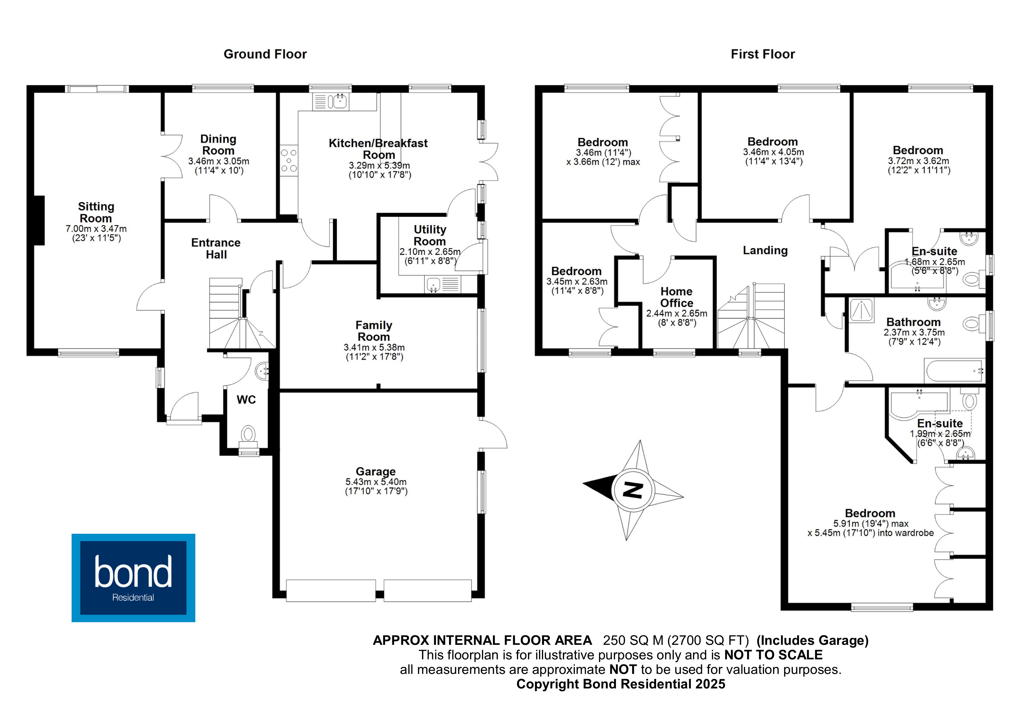 Upstairs, the property boasts five generously sized bedrooms, providing flexibility for family living. The master suite is a true retreat, featuring a luxurious en-suite bathroom and ample wardrobe space. One other bedroom also benefits from en-suite facilities, ensuring privacy and convenience for family members and guests. A well-appointed family bathroom serves the remaining two double and one single bedrooms. The property includes a dedicated home office, ideal for remote working or study, ensuring a perfect work-life balance.